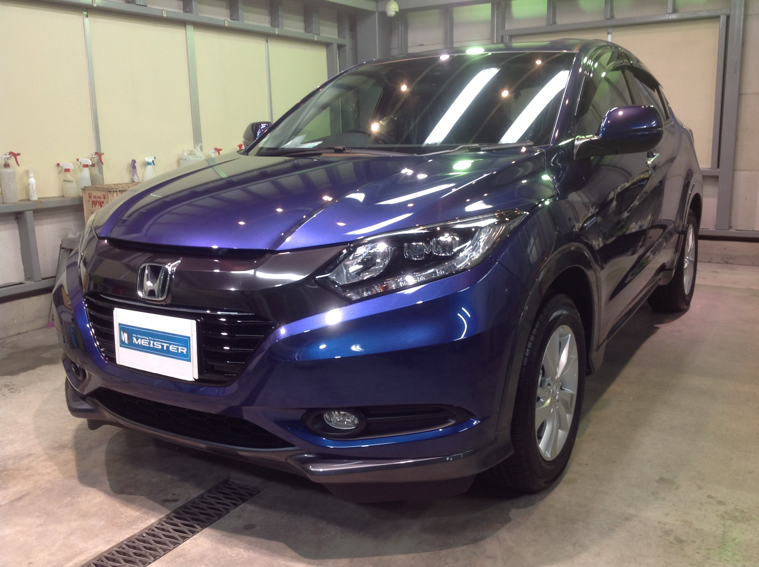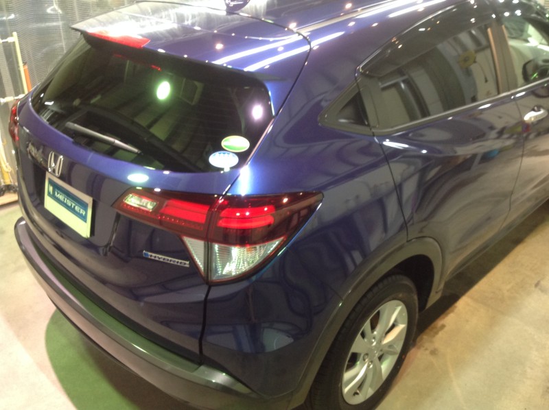 綺麗なブルーがコーティングすることによって、さらに奥深い艶のあるブルーになりました。ガラス撥水もしたので、ボディもガラスも弾きまくりです!
