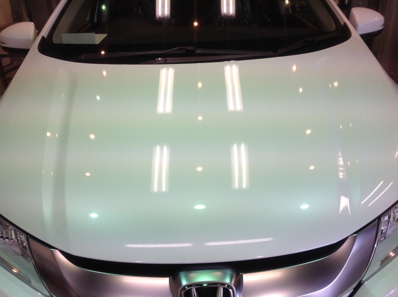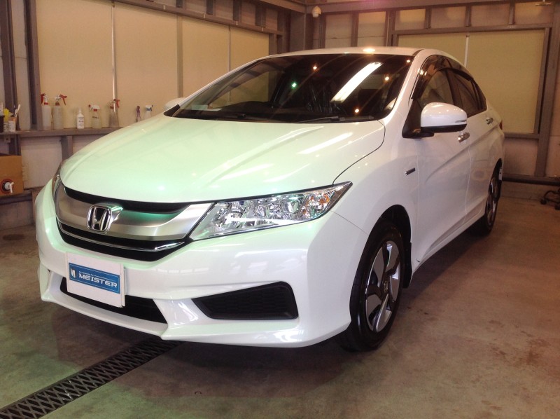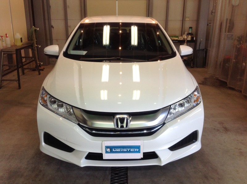 白いクルマは水垢が目立ちやすいのですが、コーティングをしておけば付きにくく、付いてしまっても落とし易くなりますよ♪