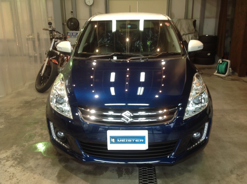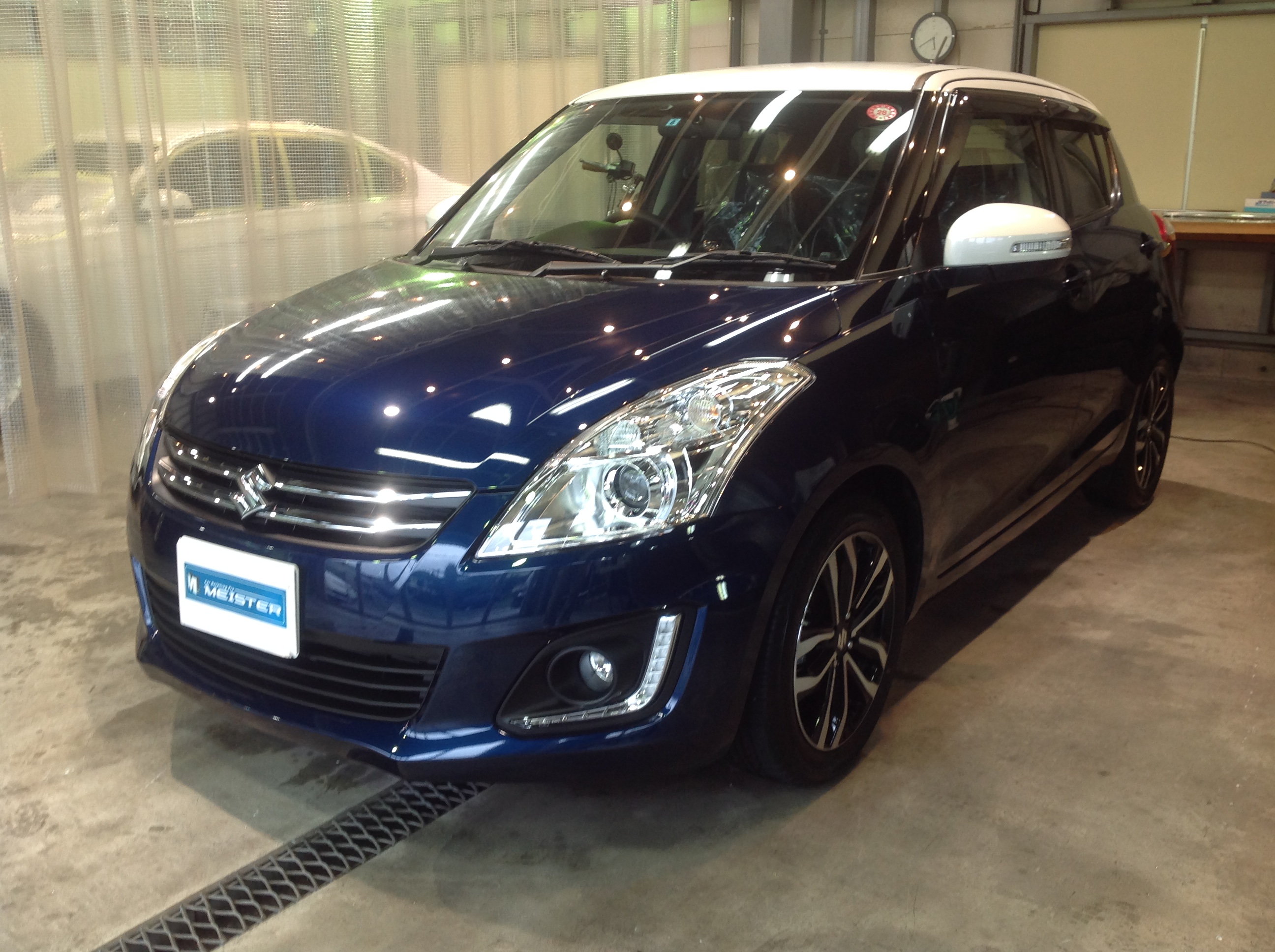 ブルーとホワイトの2トーンカラーで爽やかなボディに、エネチャージ&デュアルジェットエンジンを搭載したスズキ「スイフト」をコーティングしました。