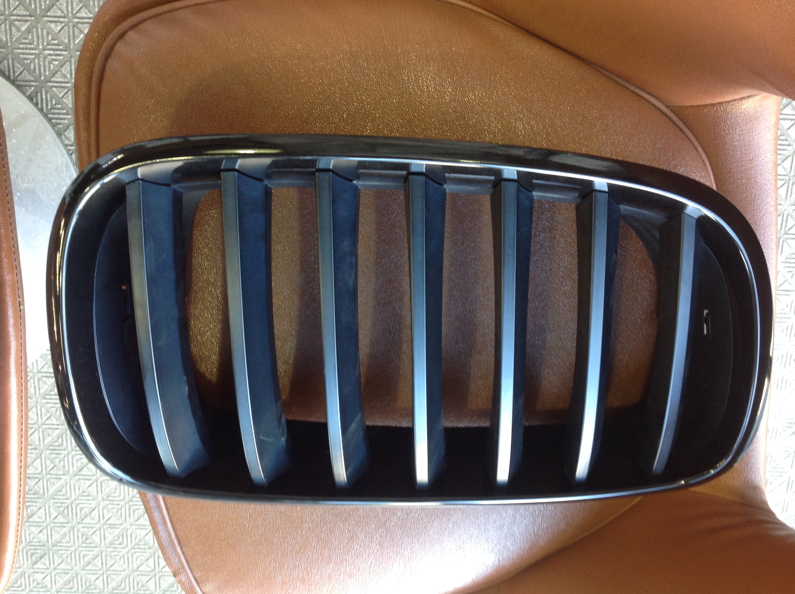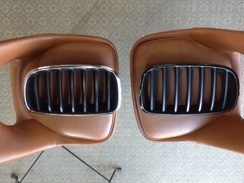 今回はグリルのラッピングをご紹介。まずはボディからグリルを取外し、さらにメッキ部分を外して施工。色は定番の”マットブラック”は使わず”ブラックメタリック”をチョイスして光沢が残るようにしてあります。施工後はフロントが引き締まって印象になりました。