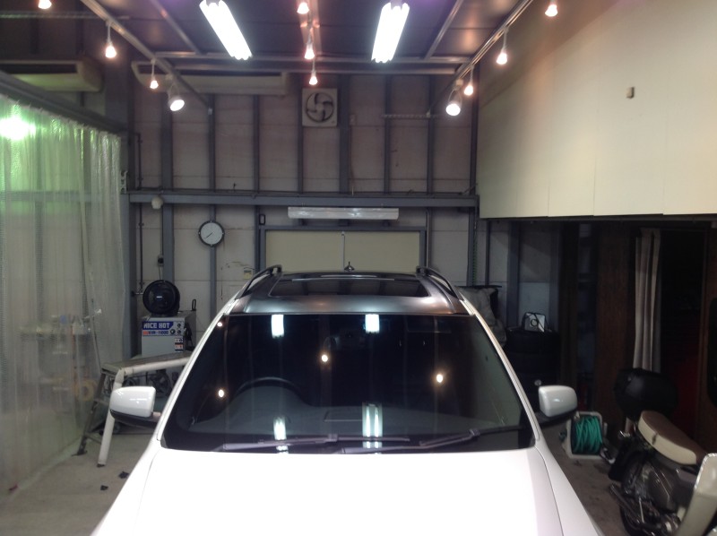 ルーフは大きなフィルム一枚で貼りますが、このX5にはルーフレール(センターに向かって傾斜)とリア側に大きめのアンテナがあって、貼り込むのにかなり手こずりました。