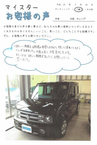 日産キューブのボディを延長して3列シートにした、コンパクトミニバン「キューブキュービック」。この度はご購入頂きまして、誠にありがとうございます‼