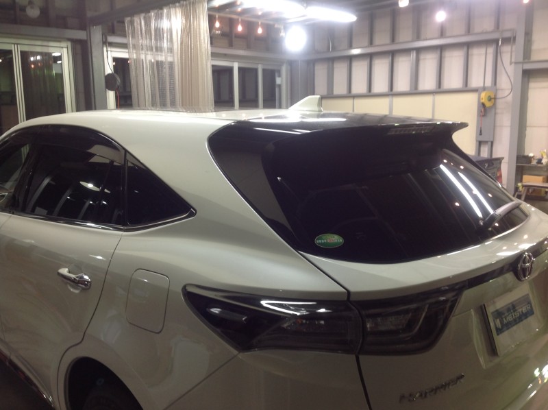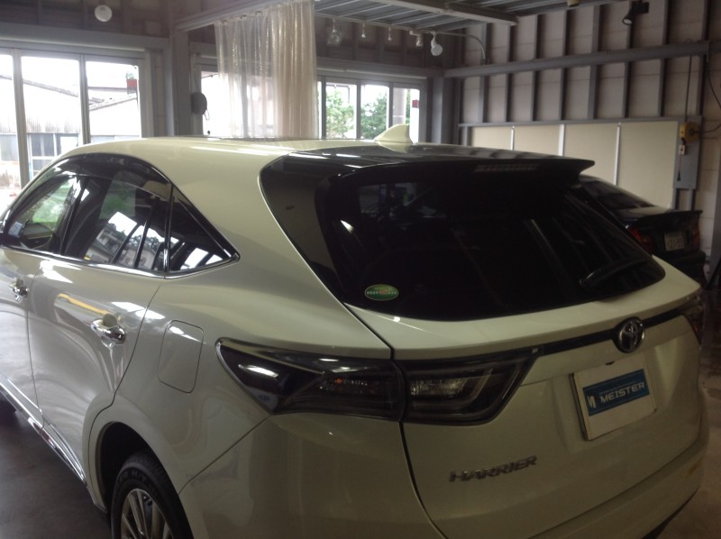 6月頃にコーティング、サンルーフの断熱フィルム、プロテクションフィルムを施工したトヨタ「新型ハリアー」のフロント(2面)とリア(3面)に断熱フィルムを施工しました。