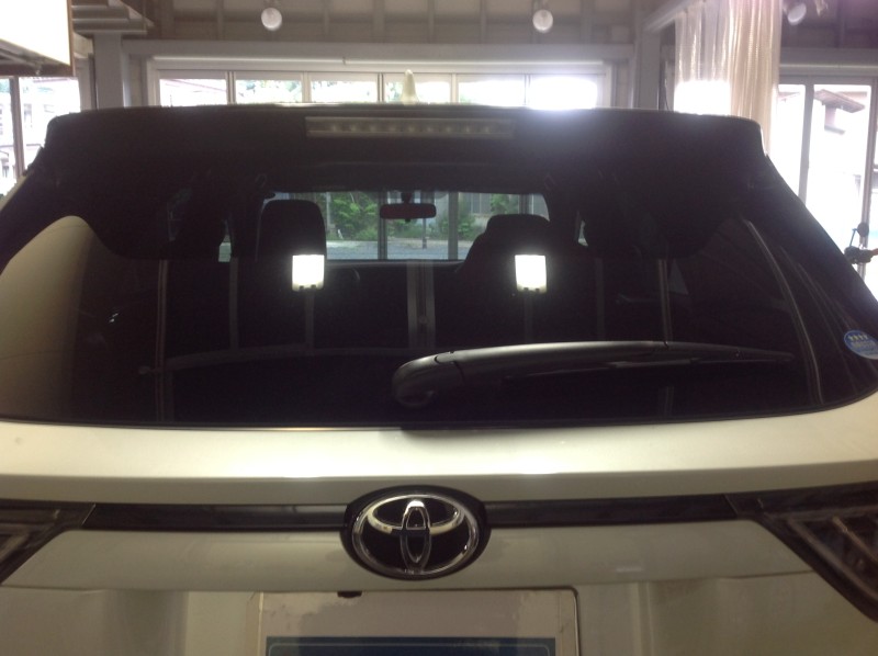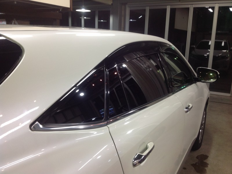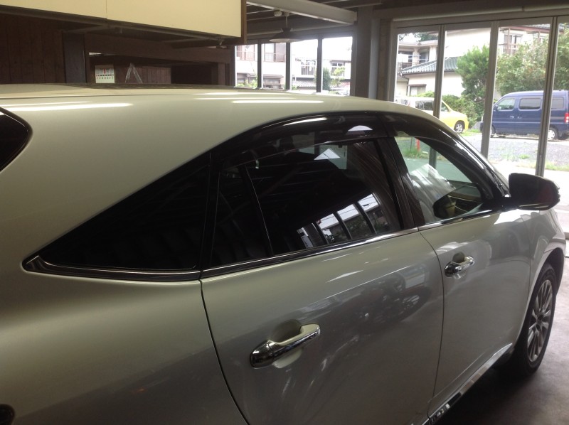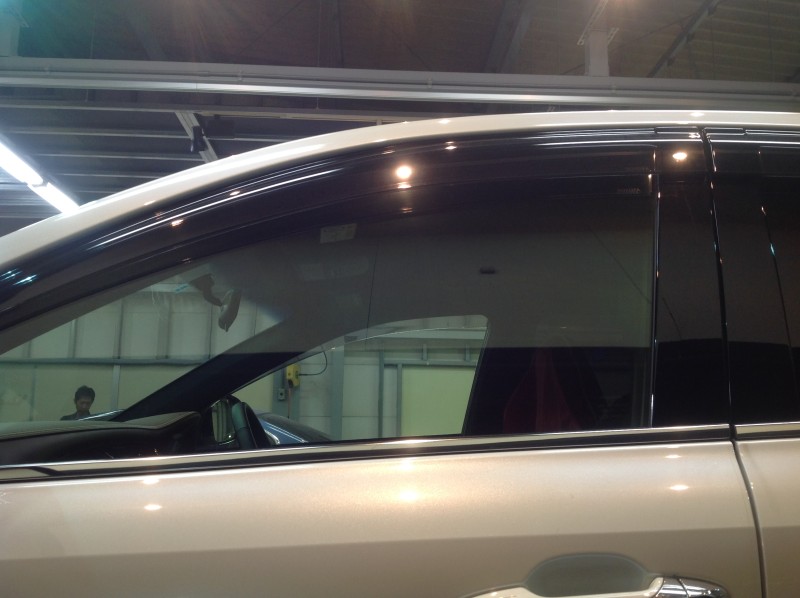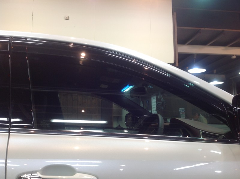 サンルーフは施工済みでしたが、「夏の日差しで車内が暑い」とのことでご依頼頂きました。フロントは透明の断熱フィルム、リアは標準で色の付いたガラスでしたので、あまり濃くないフィルムを使用し色が濃くなりすぎないように調整しました。