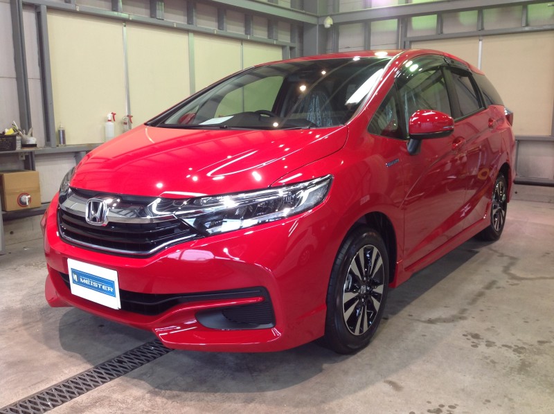 真っ赤なボディが目を引く、5ナンバーサイズのステーションワゴン、ホンダ「シャトルHV」をコーティングしました。