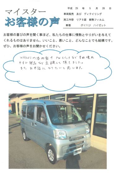 高価なバイクを積むのでリアに濃い目の断熱フィルムを施工。防犯効果をアップしつつ冷暖房効果もアップするので一石二鳥!?