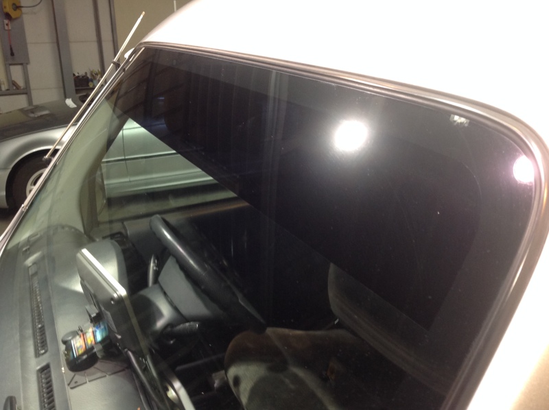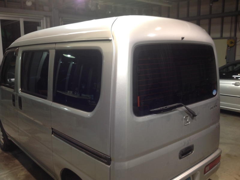 リアに特殊車両用断熱フィルム、フロント上部に日よけフィルム、運転席・助手席窓に透明断熱フィルムを施工しました。