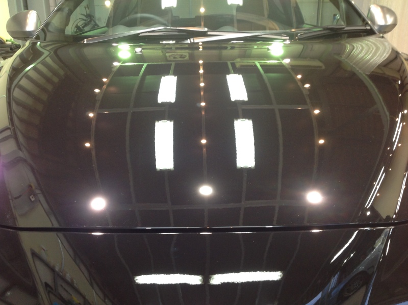 ボンネットに大きなステッカーが貼った跡がありましたが、キレイに消してコーティング。新車に負けない感じでピカピカになりました~